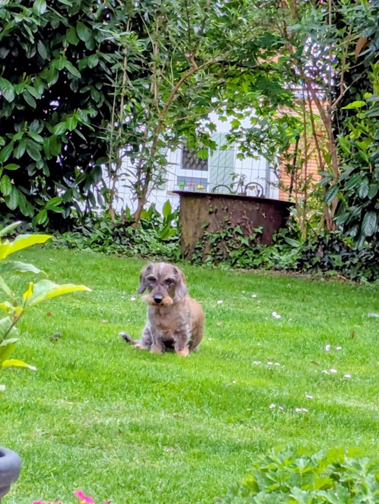 Als wir unseren Rauhaardackel 2022 das erste Mal bei Elfriede sahen, war es Liebe auf den ersten Blick und sein Aussehen brachte uns auf den Namen Zausel. Zu diesem Zeitpunkt hatten wir noch einen Leonberger, die zwei wurden zum Dreamteam. Zausel (geb. 2022) wuchs zu einem ausgeglichenen, lernbegeisterten und zufriedenen Dackelmann heran, der mit allem und jeden gut auskommt und den nichts aus der Ruhe bringen kann.